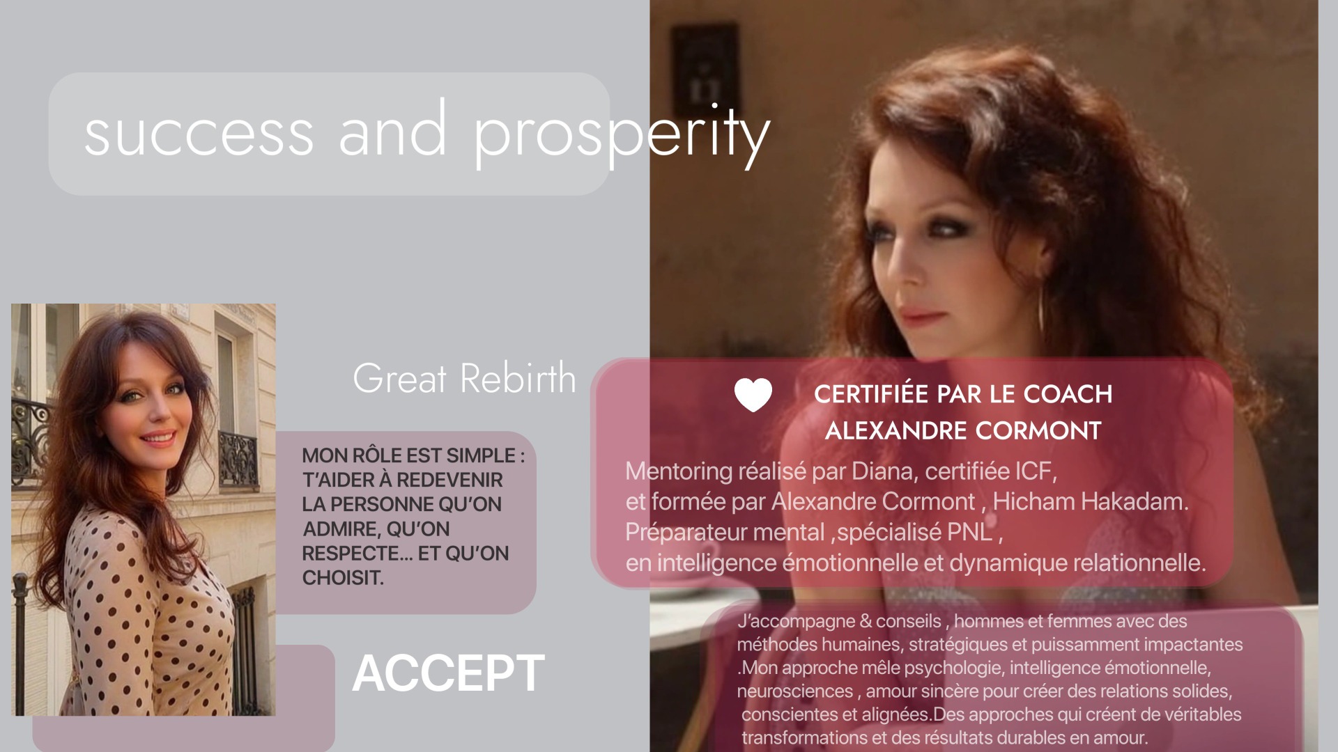 Experte en transformation amoureuse, en sensualité naturelle et en mindset de succès, je guide les âmes rebelles, sensibles et multipassionnées à incarner l’excellence émotionnelle, la puissance du cœur et l’élégance intérieure