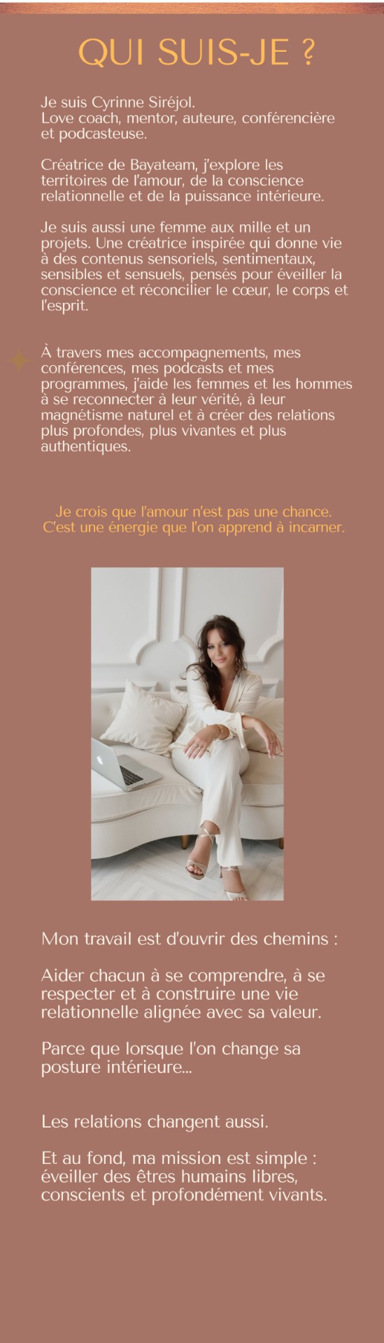 BAYA TEAM – Cyrinne Siréjol Love Coach & Business Mentor Accompagnement Féminin & Masculin www.baya-team.fr Instagram : @baya.team Facebook : Baya Team Contact : contact@baya-team.fr